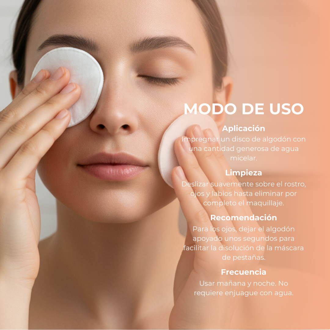 Para maquillajes waterproof o de larga duración, se recomienda dejar el algodón impregnado con el producto sobre la piel unos segundos antes de deslizarlo para una mejor eliminación.