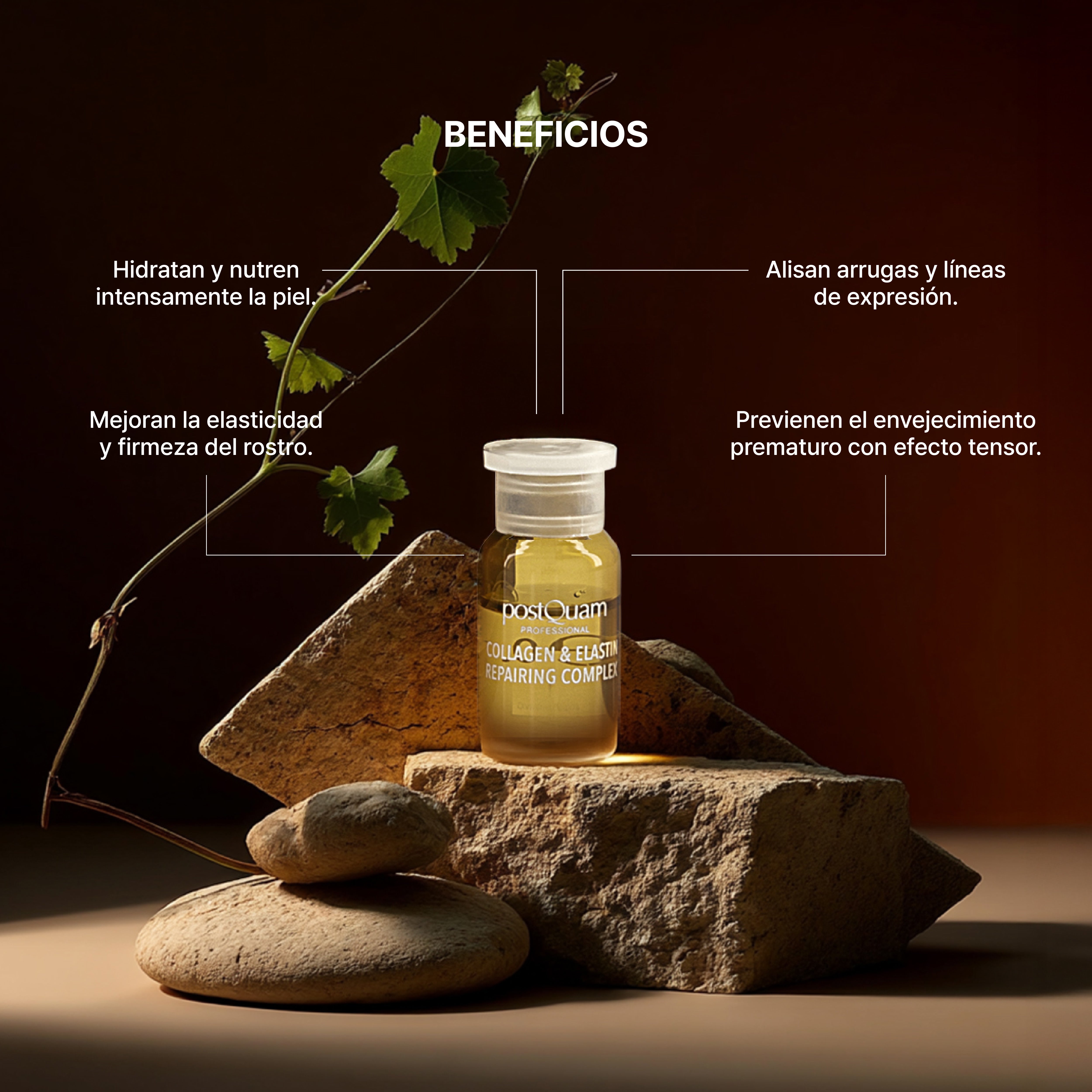 Con una formulación rica en activos como Colágeno, Elastina, Ácido Hialurónico y Extractos Vegetales, estas ampollas reactivan el metabolismo celular y producen un efecto lifting visible. Además, su contenido en Extracto de Manzanilla calma y relaja la piel, dejando un rostro luminoso y libre de impurezas.