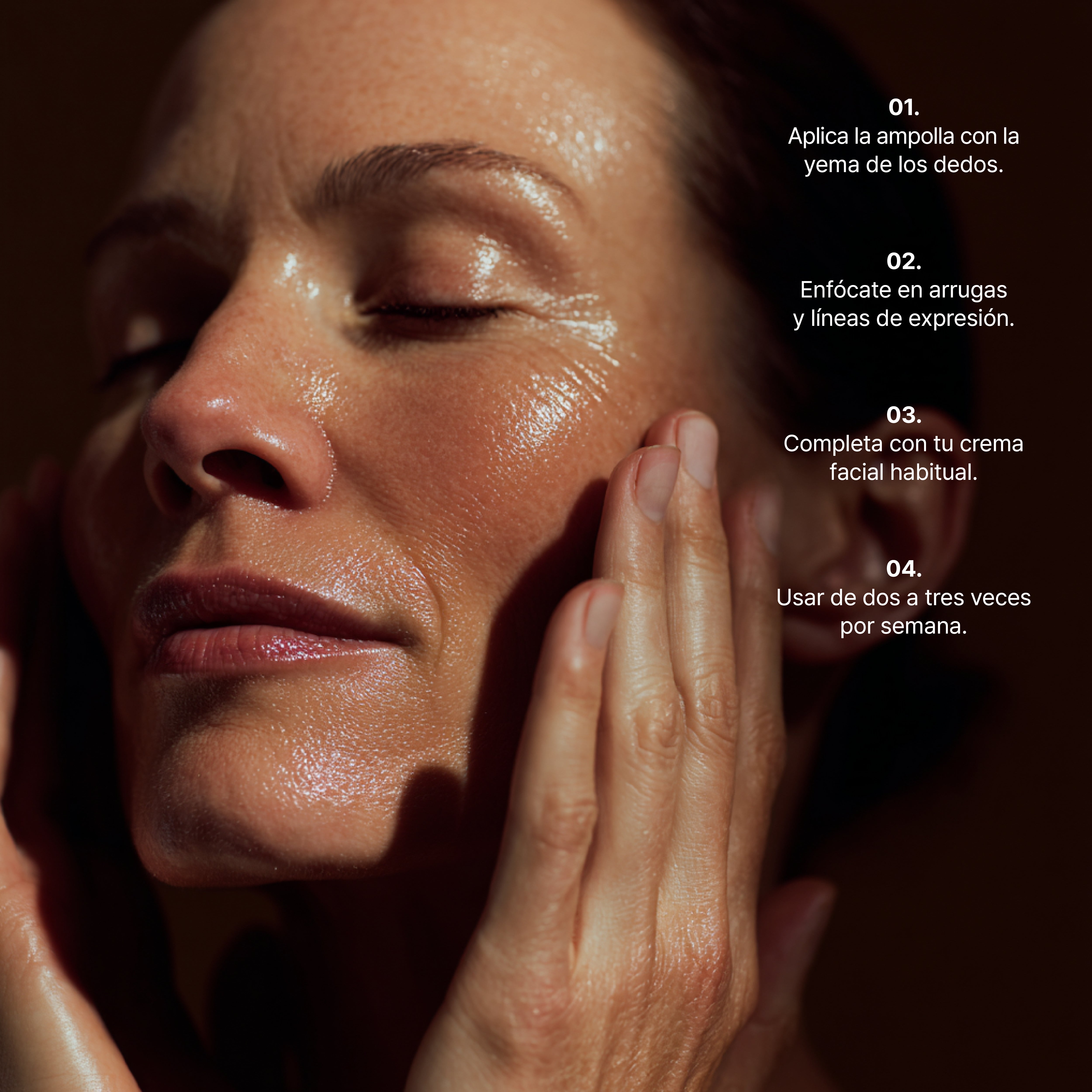 Los resultados visibles se obtienen a partir de 4 a 6 semanas de uso continuo, especialmente en momentos de fatiga, cambios de estación o después de exposiciones solares.