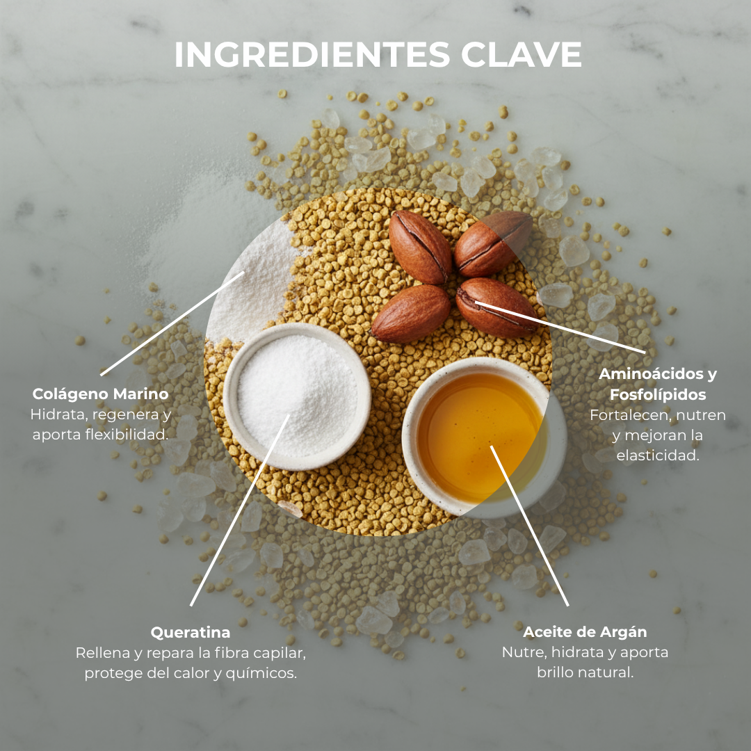 Los aminoácidos y fosfolípidos forman una combinación esencial para la salud del cabello, ya que aportan los nutrientes necesarios para fortalecer la fibra capilar.