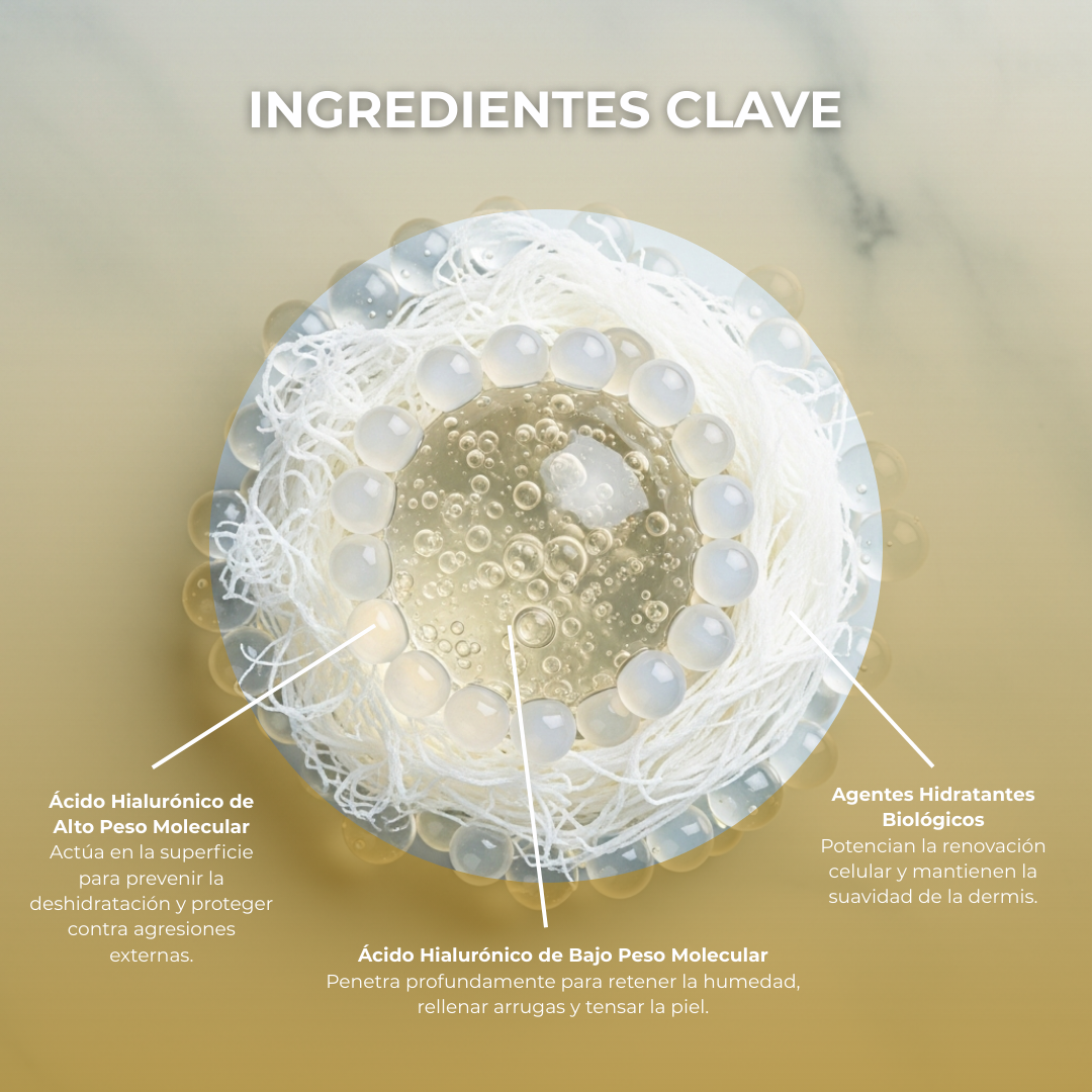 El Sérum Biológico con Ácido Hialurónico está especialmente diseñado para un tratamiento intensivo y profundo de las arrugas. Su fórmula concentrada de Ácido Hialurónico penetra hasta las capas más profundas de la piel, demostrando los múltiples beneficios de este activo sobre el rostro.
