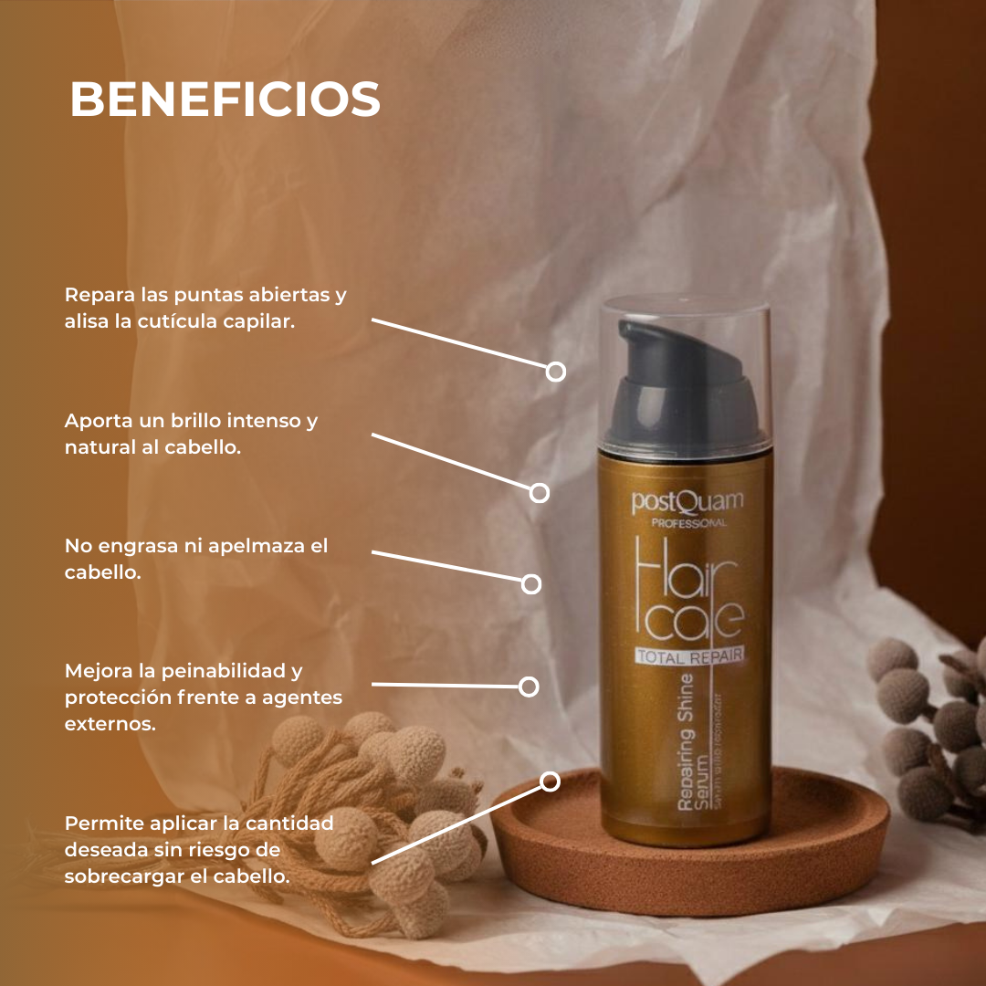 El Brillo Reparador de Postquam contiene una mezcla de siliconas al agua que restaura la cutícula capilar y combate las puntas abiertas. Además, añade brillo al cabello sin dejar una sensación grasa, haciendo que tu pelo luzca sano y revitalizado.